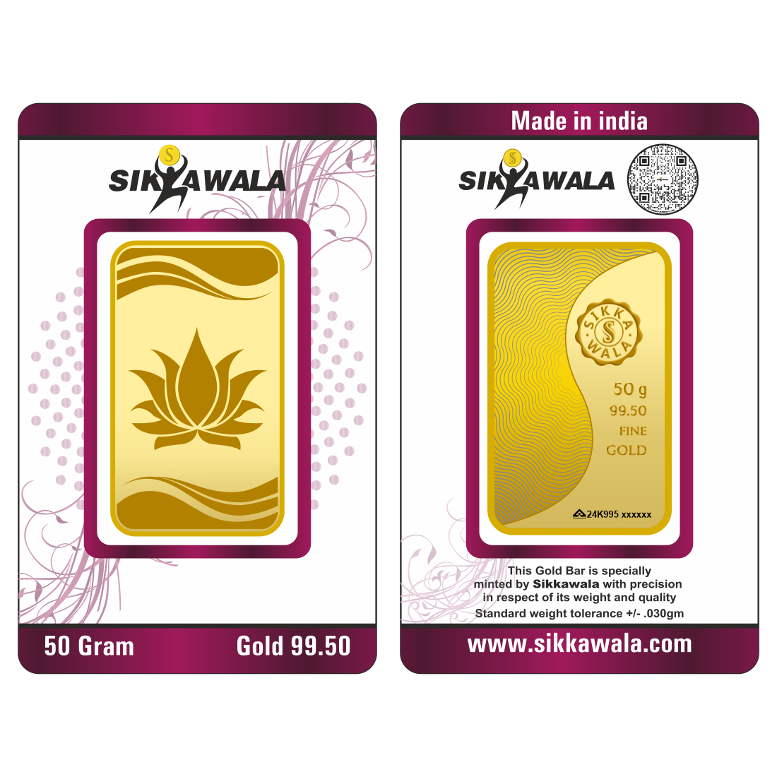 Sikkawala Lotus 24 kt 99.5 Gold Coin 50 gm-SK50GB