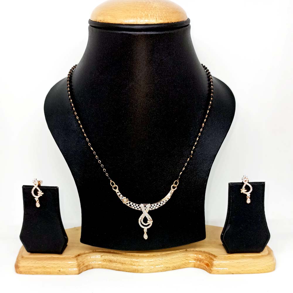 Rose Gold Plated Silver Studded Necklace Set For Women 3000072