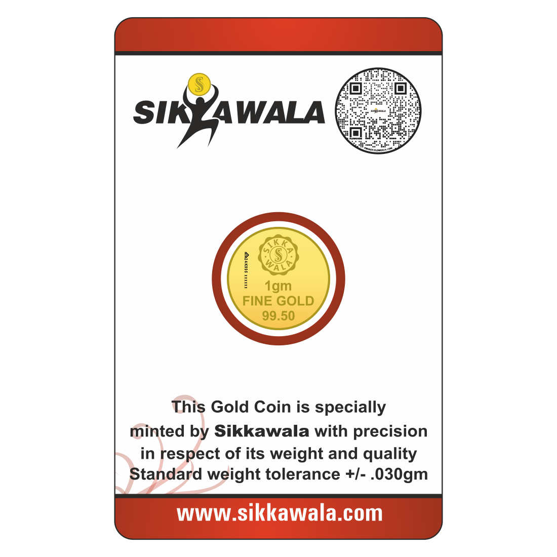 - CERTIFICATION: This coin comes with a Authenticity Certificate Guarantees purity of 99.50 Gold. Sikkawala provide 100% buy back at the existing rate of Gold/Silver at deduction of GST and making charges; In all cases, the current market value will be determined by Sikkawala, Exchange and Buyback may be available offline