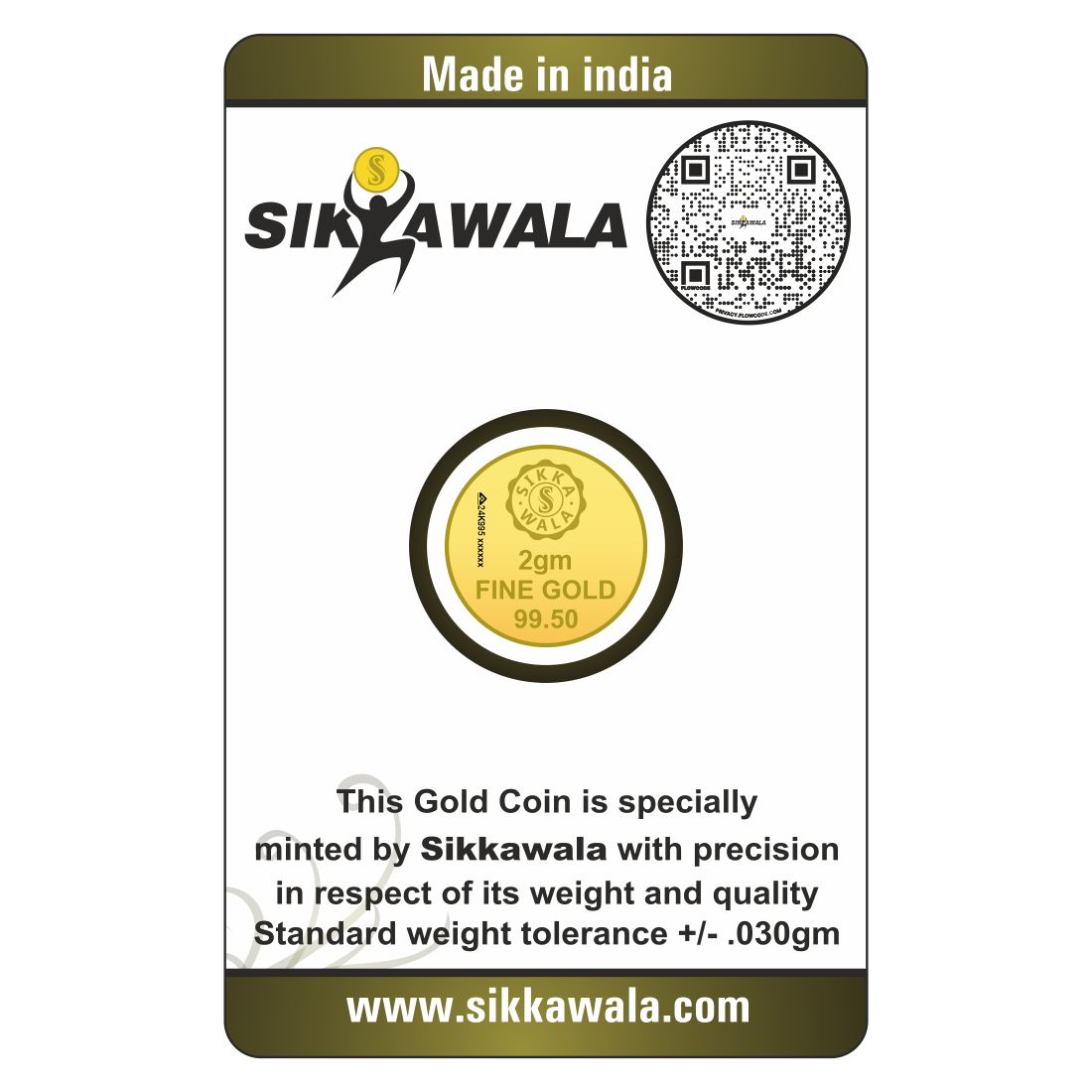 - CERTIFICATION: This coin comes with a Authenticity Certificate Guarantees purity of 99.50 Gold. Sikkawala provide 100% buy back at the existing rate of Gold/Silver at deduction of GST and making charges; In all cases, the current market value will be determined by Sikkawala, Exchange and Buyback may be available offline